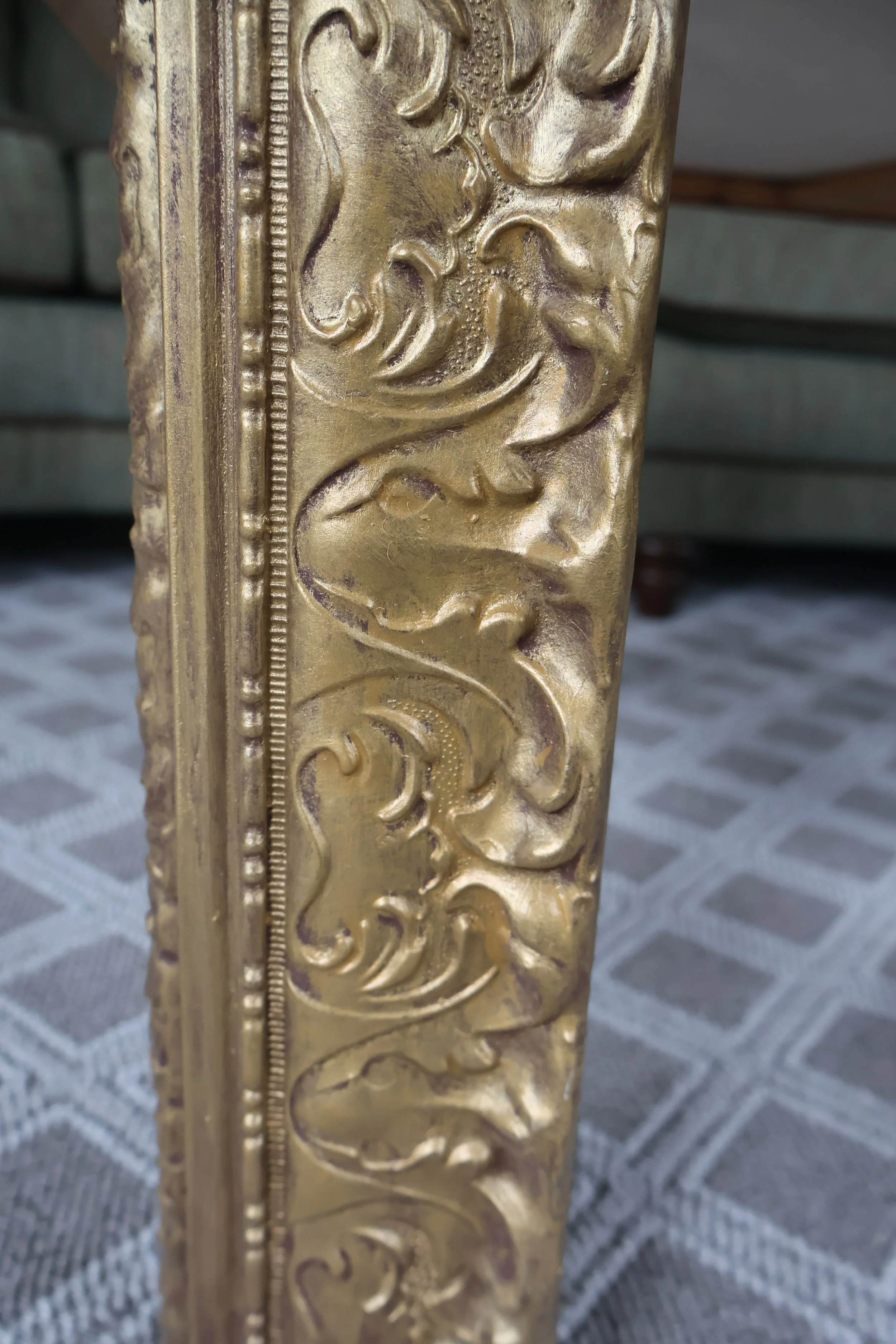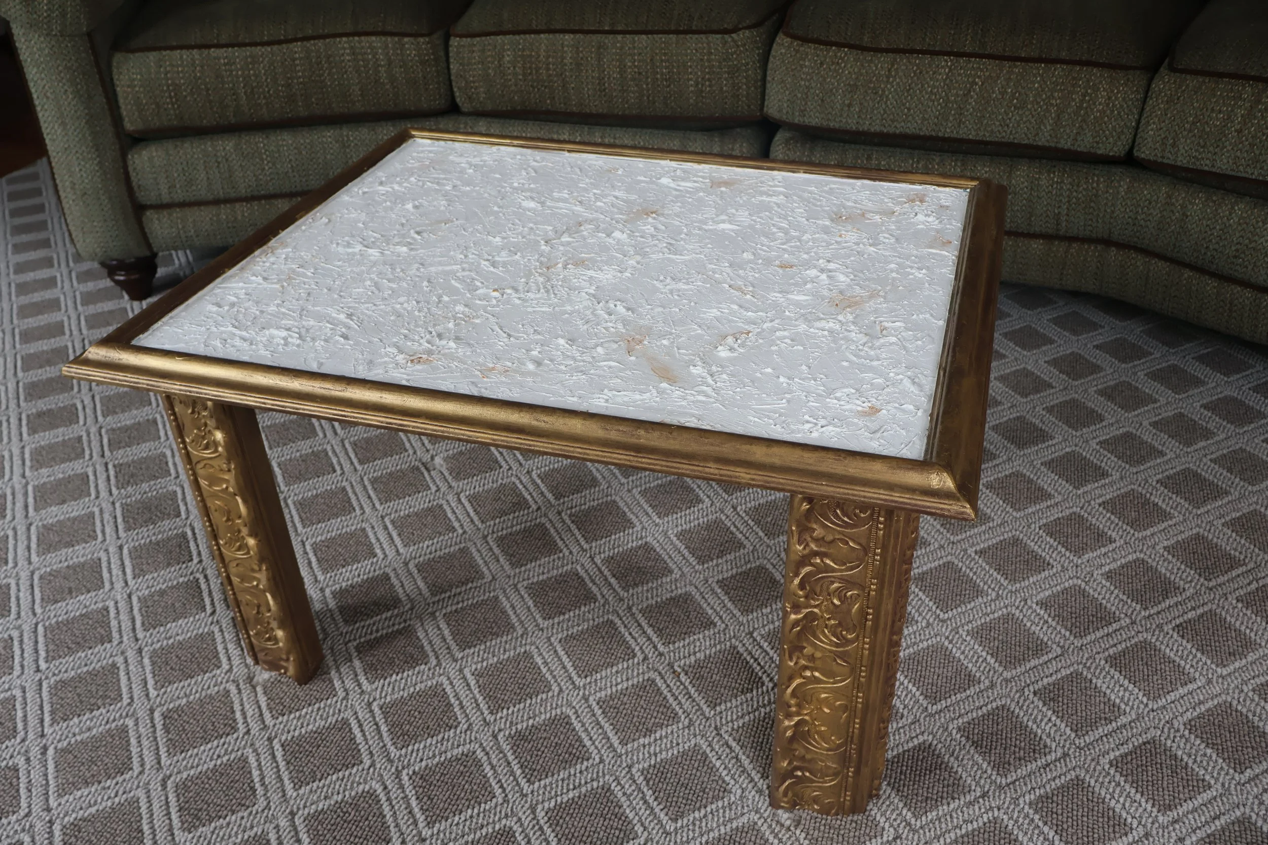 “Coffee Table” made from two thrifted frames, canvas, spackle, woodfiller, and acrylic paint leftover from other projects